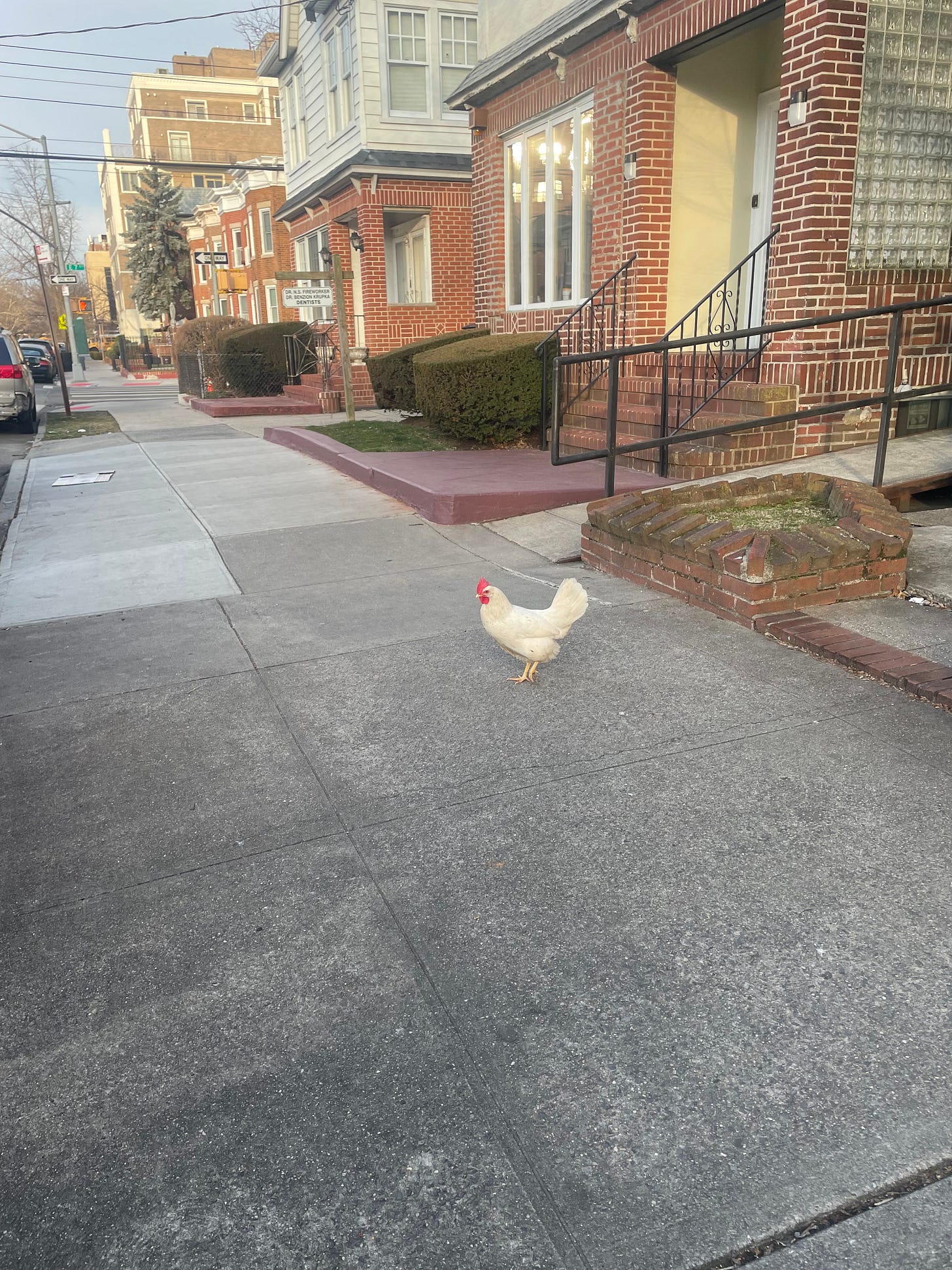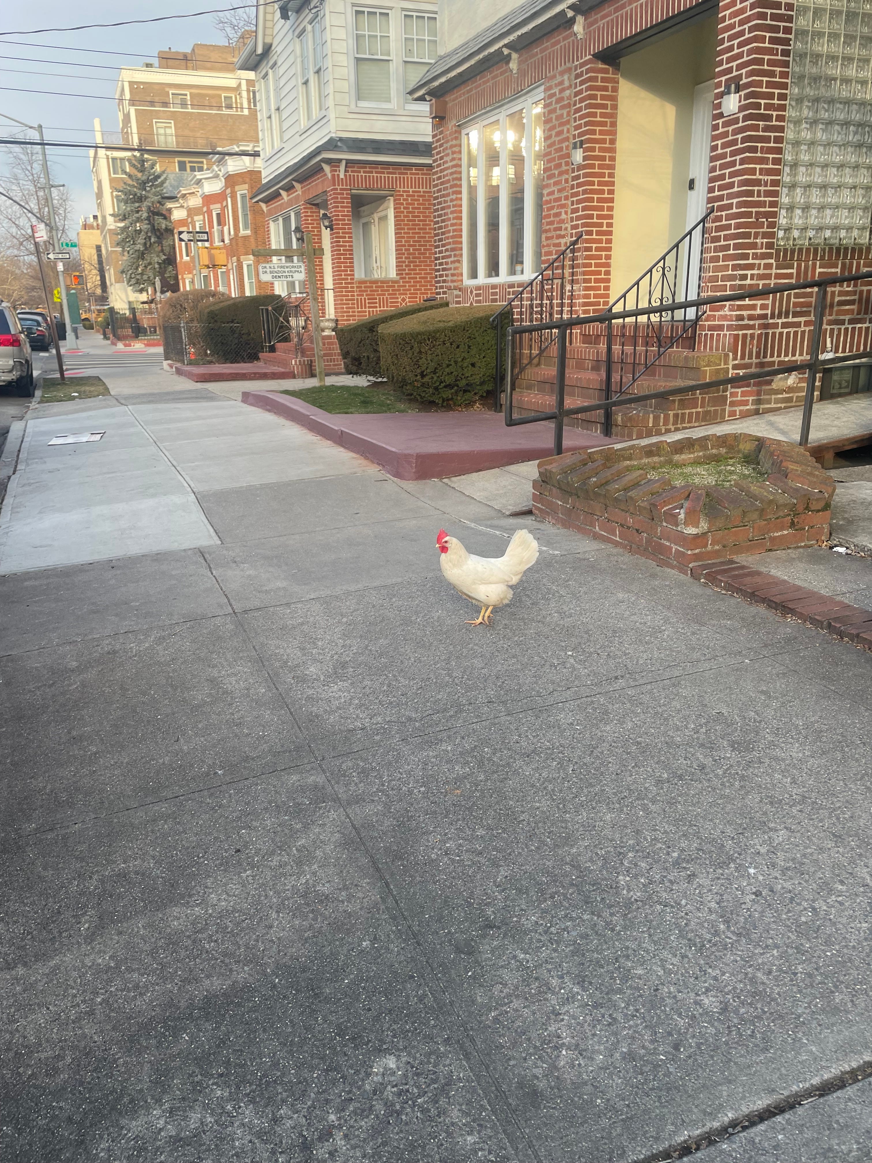 It may have been looking for a minyan. The question is why did the rooster cross the street in Flatbush? Leave an answer in the comments.